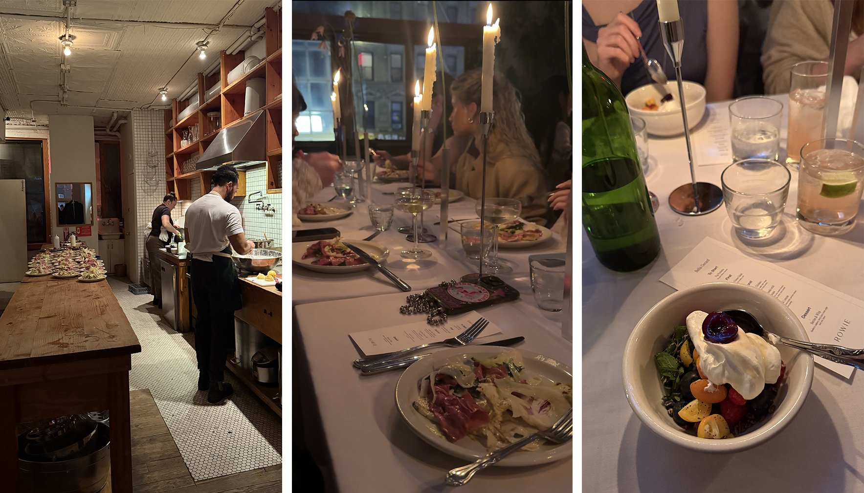 7:56PM Last stop! I arrive to a second-floor event space for dinner with Rowie The Label, a new-to-me Aussie brand. There are two long tables of guests already enjoying drinks and appetizers, and a spot for me is open next to my friend, Kelsey.