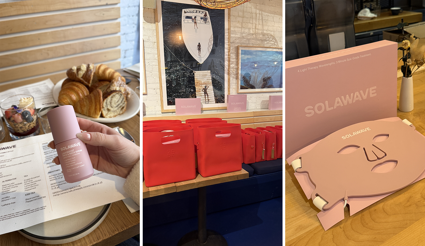 9:10AM I arrive at Two Hands in Tribeca for breakfast with Solawave and immediately hit a biker with the car door. Oops! Dent-free and cussed out, I head inside for breakfast tacos and some chat about their newest LED innovations.