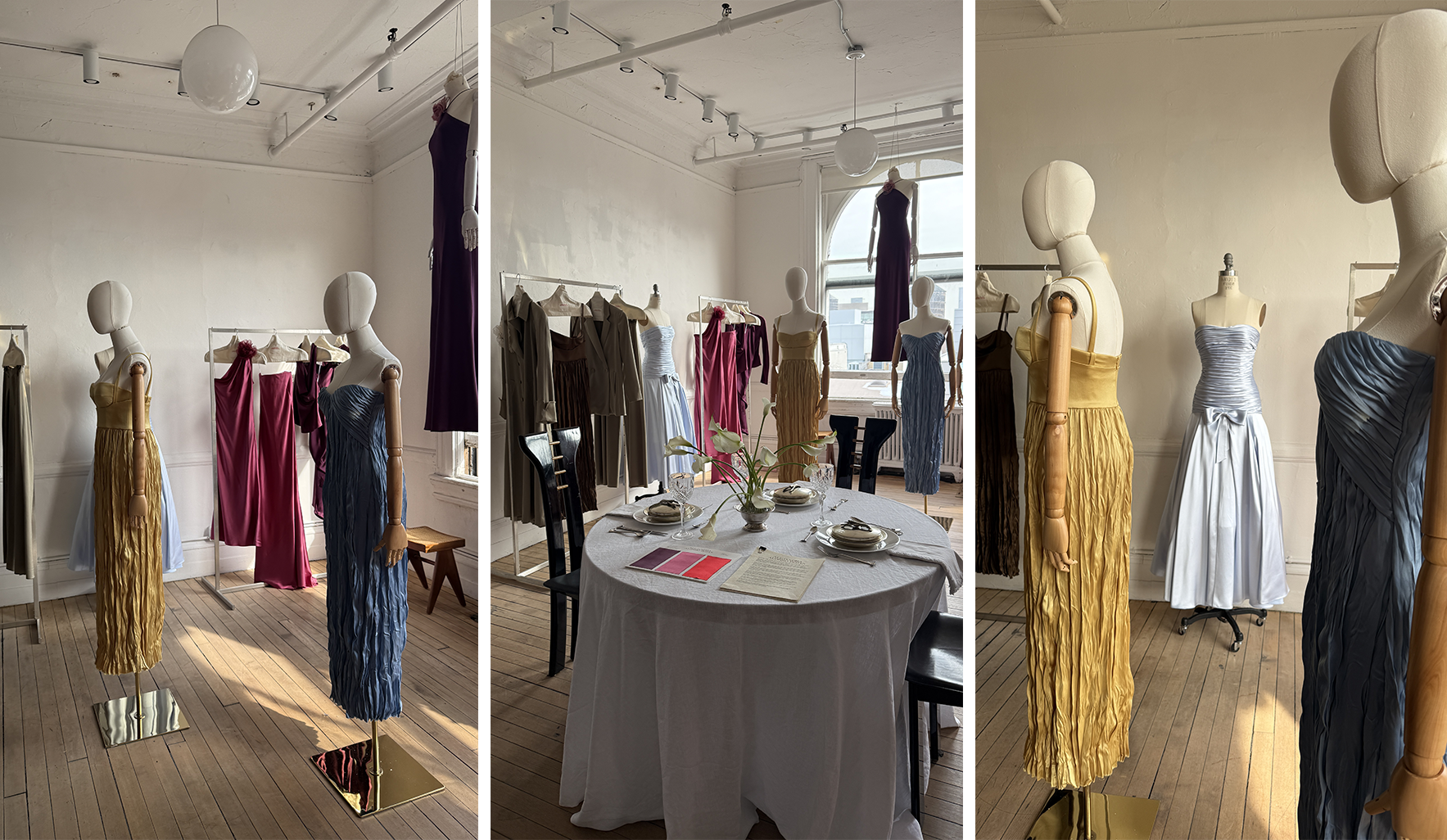 12:04PM I arrive and am greeted by AAR herself in a beautiful, minimalist showroom. She walks me through her intentions when it comes to creativity and sustainability, and shares that the entire new collection is made from repurposed fabrics from past designs. Many of the pieces have been dyed and hand-pleated, and everything is beautiful and intentional.
